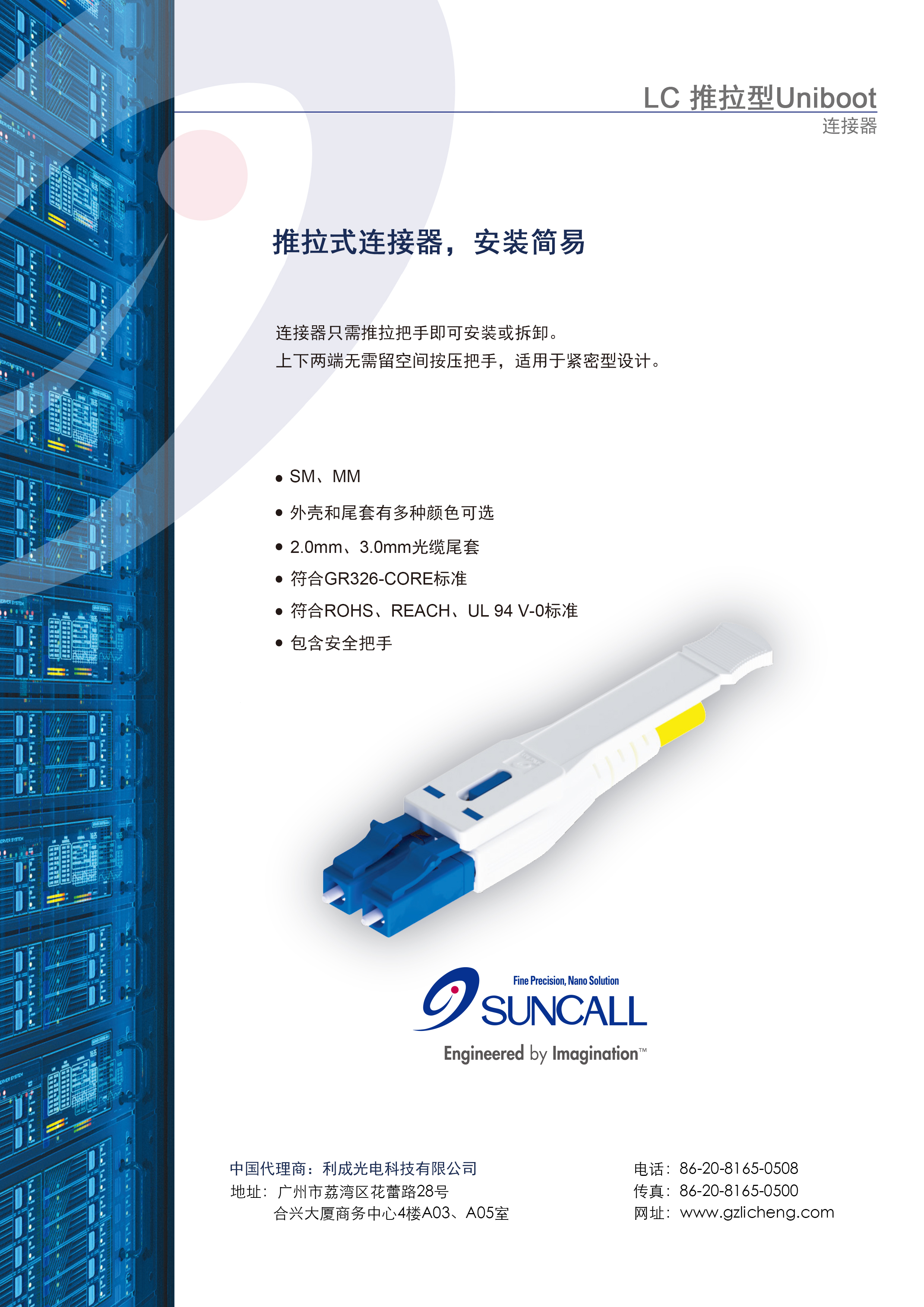 SUNCALL 首頁 > 技術支持 > 產(chǎn)品單張 > SUNCALL LC 推拉式 Uniboot 連接器 來源:本站作者:admin日期:2020/2/20閱讀 0 上一篇:LC 可互換極性Uniboot 下一篇:特殊尾套連接器
